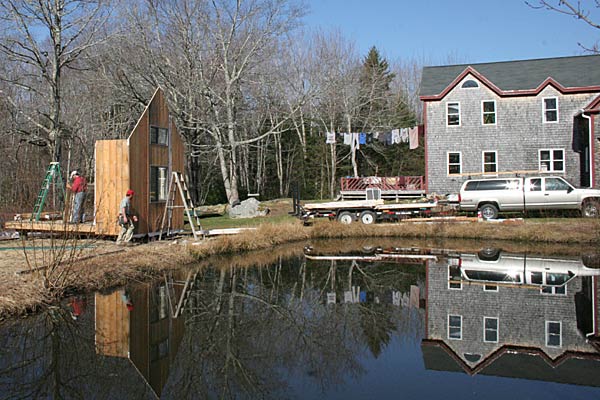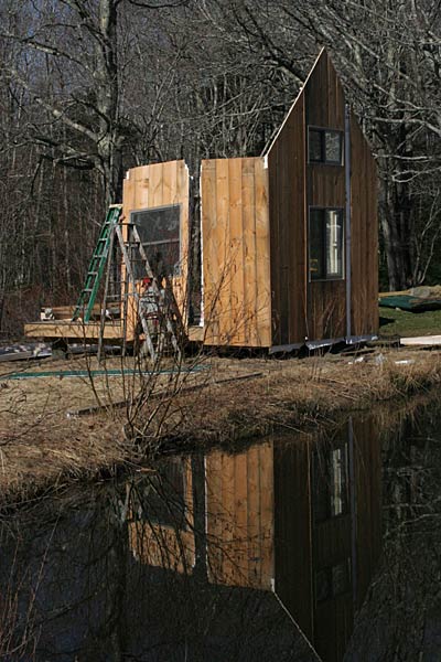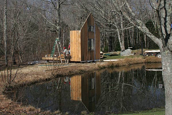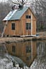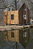 The Pond-Side Studio is an original BungalowInABox PANEL-FRAME structure. This lightweight, elegant building serves as a sound studio for a podcaster and could easily serve as an ADU.